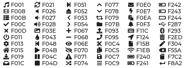 Section titled “Library fonts”The LVGL library offers by default prerendered sets with ASCII characters (0x20-0x7F), the degree symbol (0xB0), the bullet symbol (0x2022) from Montserrat Medium, and 60 symbols from FontAwesome (see below). You can use the IDs below when specifying the text_font parameter: