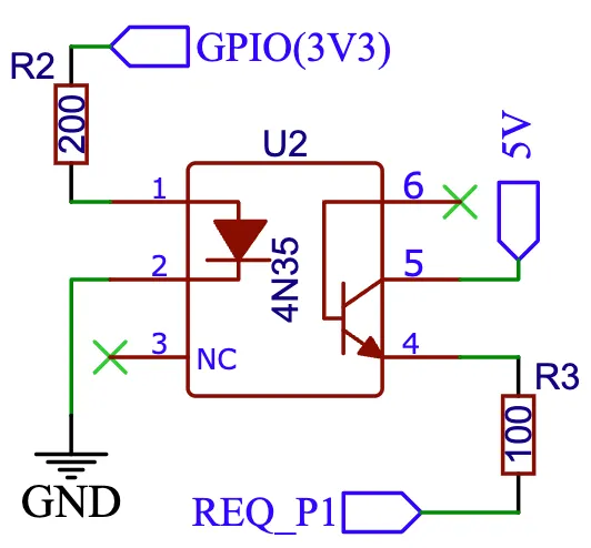 Section titled “Required hardware support”Many DSMR reader circuits link the +5V pin of the P1 port directly to its Data Request pin. Doing this will