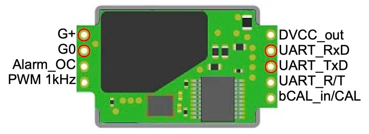 G+ should be connected to power supply (supported voltage is 4.5 V to 5.25 V), G0 to GND pin